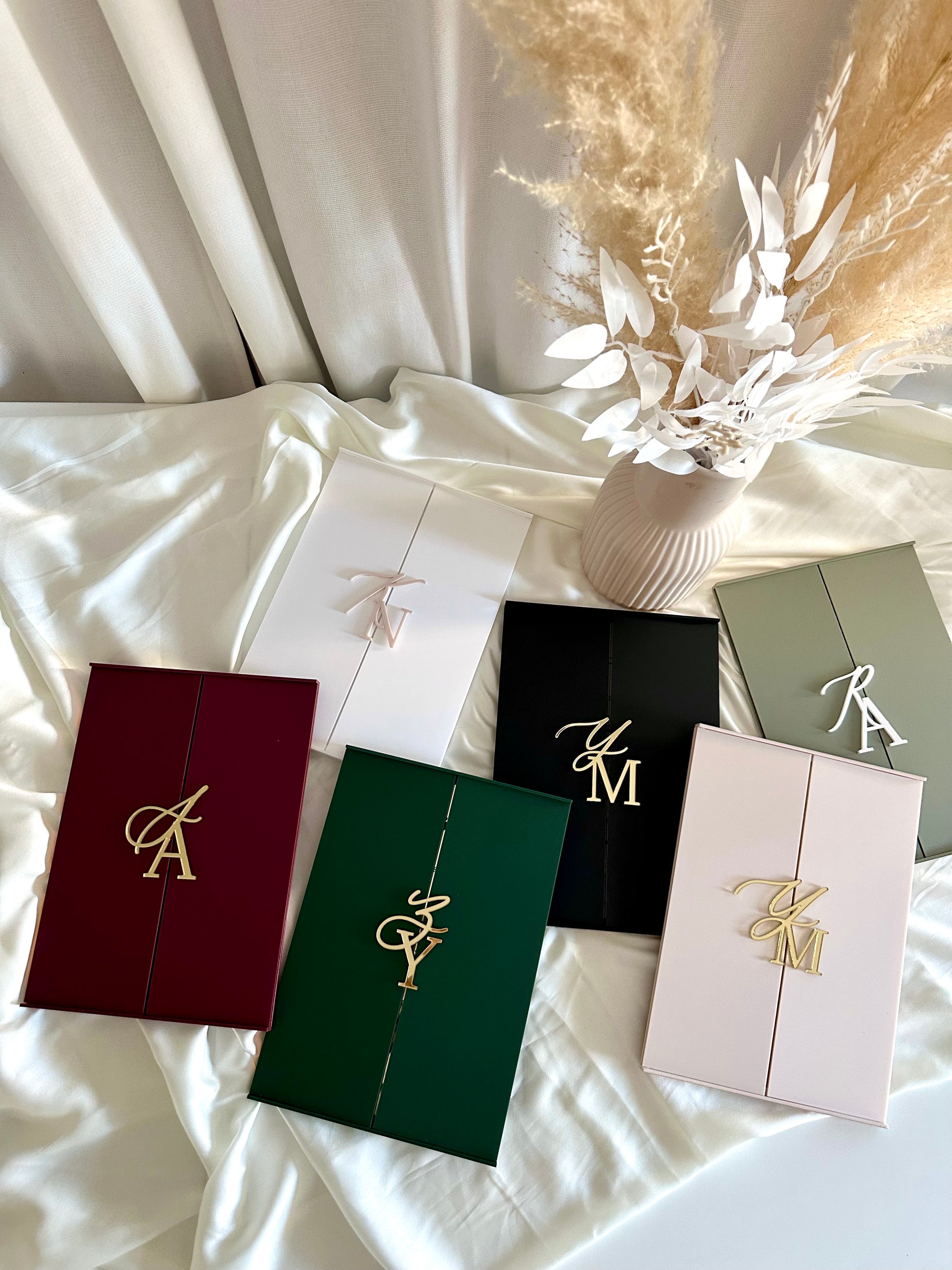 Pour la personnalisation : indiquer la couleur de la plaque intérieure, la couleur extérieure, la couleur des initiales, les prénoms, la date et si version empreintes ou signature